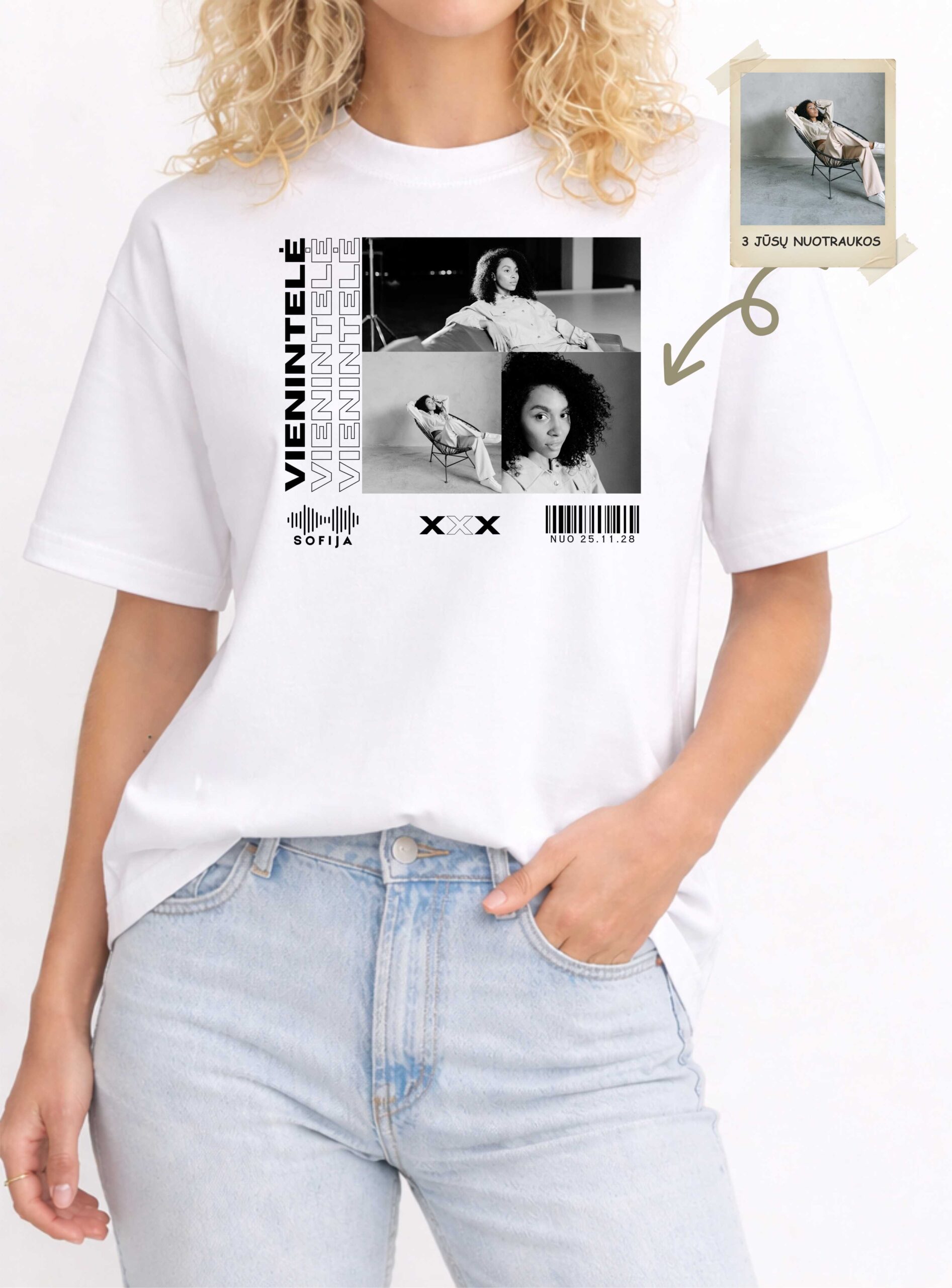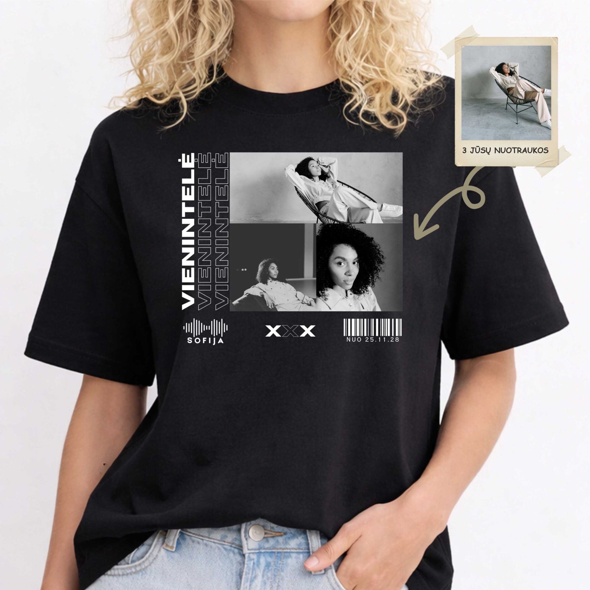 Išskirtiniai personalizuoti marškinėliai merginai su Jūsų pasirinktomis nuotraukomis, vardu ir svarbia data.